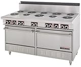 60" Wide - Garland Electric Range - Ten (10) Open Tubular Element Burners (Open Coil Type) - Two (2) Ovens - S684• Stainless steel exterior • Full size oven with complete porcelain interior finish • Chrome plated, 4-position, removable rack guides with one oven rack • Electro-mechanical heavy duty oven thermostat, 150°-550°F • Heat resistant, cool touch oven door handle • 10" high stainless steel backguard with slotted black enameled angle cap • 6" high stainless steel legs • One year limited parts and labor Open Tubular Element Burners (Open Coil Type): Standard. Each 12" section will consist of (1) 8-1/2" and (1) 6-1/2" burner (front to back) that alternates with the next 12" section. Warranty: Two (2) Years Full Parts & LaborNote: Some images will show additional options. Note: All options need to be purchased with a range.